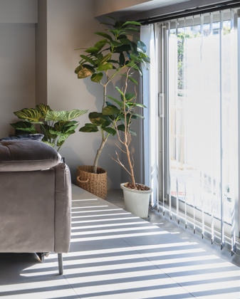 小さなインナーバルコニーに植物を置くだけで、空間が一気に癒しの場に。